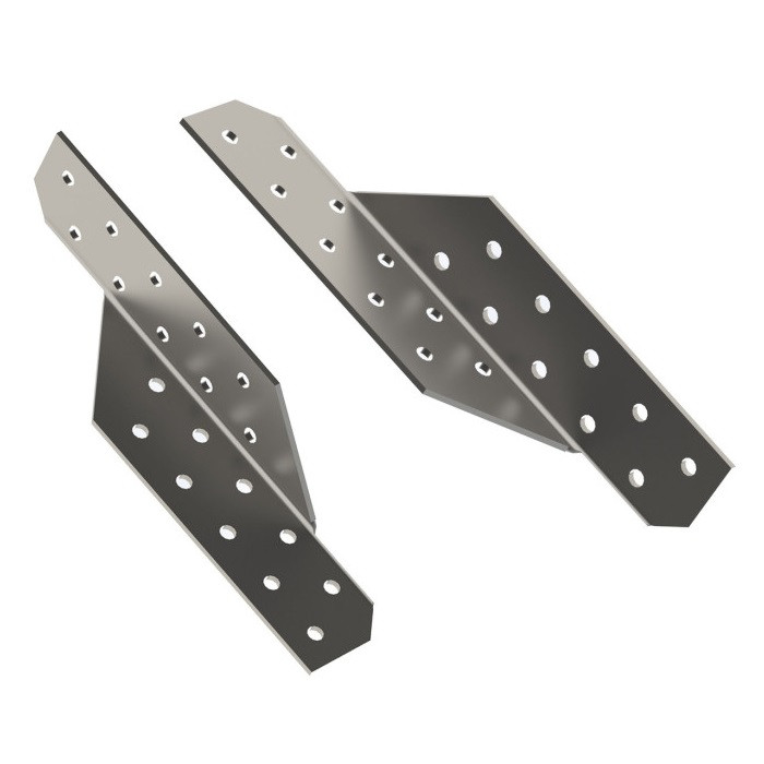 Для ефективного монтажу та надійного утримання крокв необхідно використовувати два з'єднувачі крокв у кожному місці їх примикання до мауерлату. Це включає в себе правий та лівий кроквяний куточок, що гарантує не тільки надійне кріплення, але і рівномірний розподіл навантажень на цей вузол конструкції. Такий підхід дозволяє забезпечити стійкість та надійність системи крокв протягом тривалого періоду експлуатації.