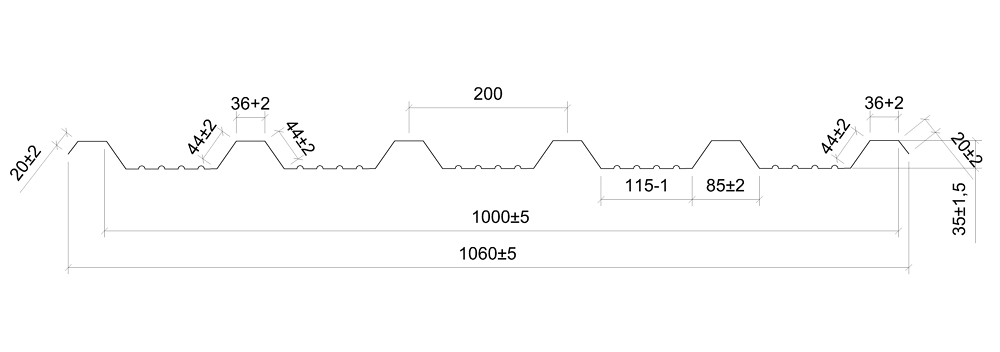 Профнастил К-35 є високоякісним покрівельним матеріалом з висотою гофри 36 мм. Завдяки великому гофру та наявності жорстких ребер на широких полицях, цей профнастил володіє високою несучою здатністю, дозволяючи використовувати обрешітку з розрідженим кроком 1,2 - 1,5 м.