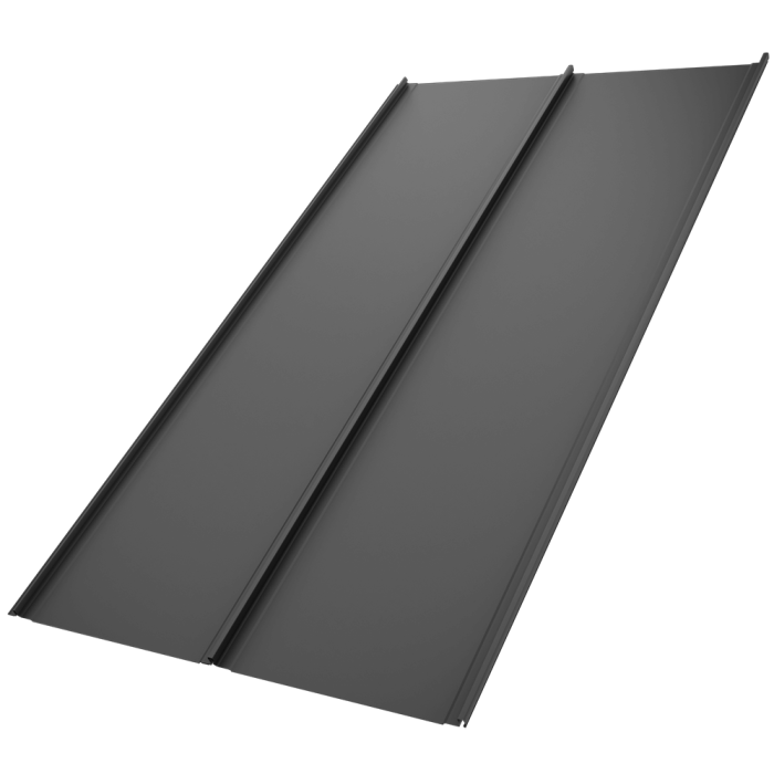 Система "клік-фальц" робить монтаж панелей простим та надійним, а використання прихованих засобів кріплення неможливе протікання та зменшує ризик корозійного пошкодження металу. Відсутність сквозних отворів на поверхні – це гарантія надійності та довговічності вашого покриття.